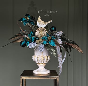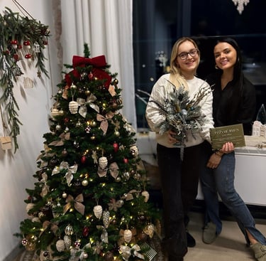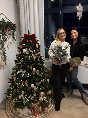 Mokysimes kurti Kalėdines dekoracijas savo namų interjerui bei išmoksime dvi skirtingas dekoro technikas. Dalyvės turės galimybę susikurti Kalėdinę kompoziciją rankų darbo vazoje arba karkasinį advento vainiką (galės pasirinkti) bei du aksominius eglutės žaisliukus. Kartu atrasime gražiausias kompozicijų formas, skęsime blizgučių jūroje! Mokymu metu ne tik mėgausimes šventine nuotaika bei kūrybiniu procesu, bet ir vaišinsimes kava, šampano taure ir užkandžiais.